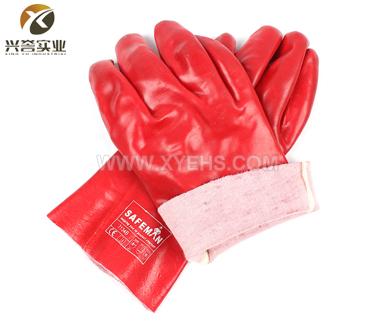 SAFEMAN君御7134B紅色PVC全浸棉襯防化手套