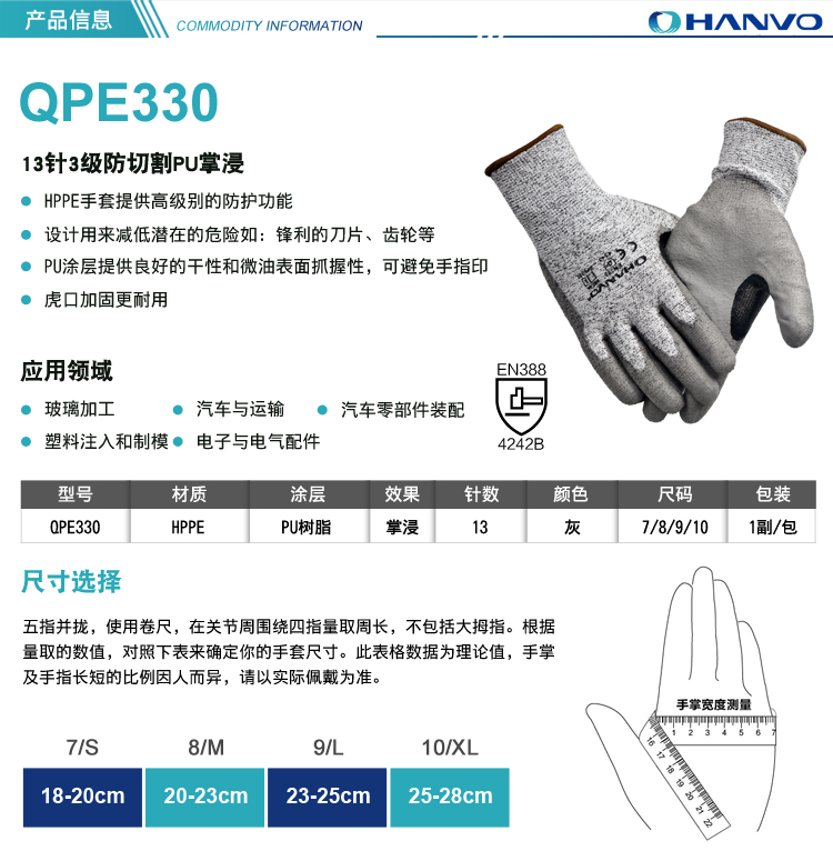 產品名稱:恒輝QPE330 防割手套