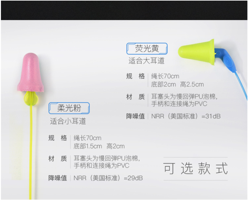 檸檬黃適用于大耳道人群,粉色適用于小耳道人群。