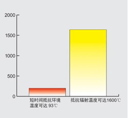 以上圖示為L(zhǎng)akeland工業(yè)隔熱服針對(duì)輻射熱和環(huán)境熱防護(hù)性能的相對(duì)比較。所顯示溫度值為試驗(yàn)室數(shù)據(jù)的推測(cè)數(shù)值,并不能用于代表此防護(hù)服裝實(shí)際使用于這些溫度環(huán)境中。使用者的具體身體狀況,工作環(huán)境,以及實(shí)際工作性質(zhì)都會(huì)對(duì)防護(hù)溫度及暴露時(shí)間產(chǎn)生不確定性。